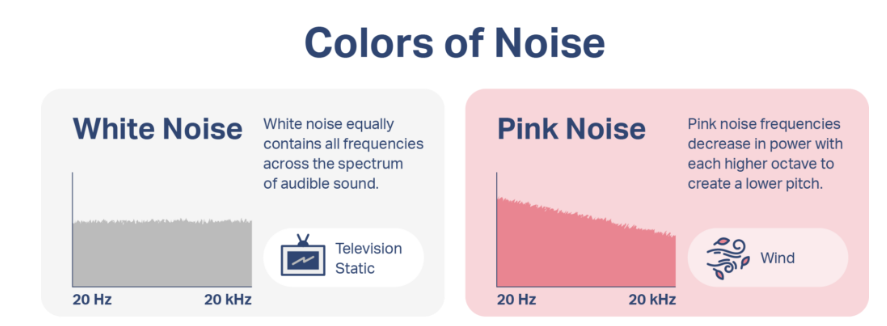 White noise works for masking, but pink and brown tones are more effective for thought regulation.