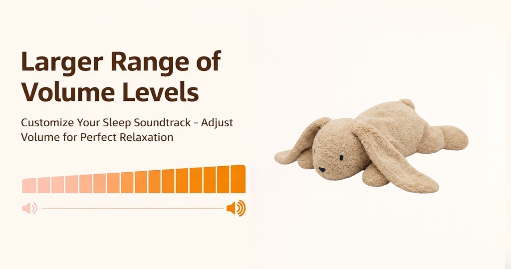 Our plush white noise toy features a wider range of volume levels, allowing parents to find the perfect sound intensity for naps, bedtime, or calming moments—whether at home or on the go.