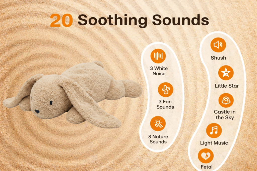 From gentle white noise to lullabies like “Little Star” and natural ambient sounds, this plush toy offers 20 comforting audio options to help babies relax, sleep, and feel secure.