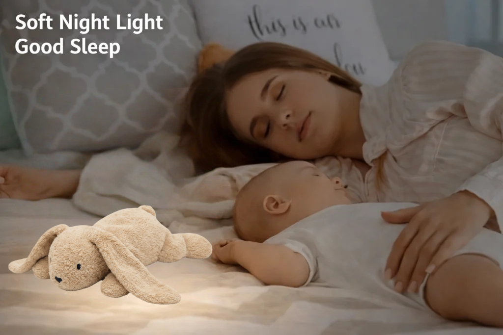 Crafted with baby-safe materials and low-light LEDs, this plush companion creates a calming sleep environment without overstimulation—perfect for newborns and tired parents alike.